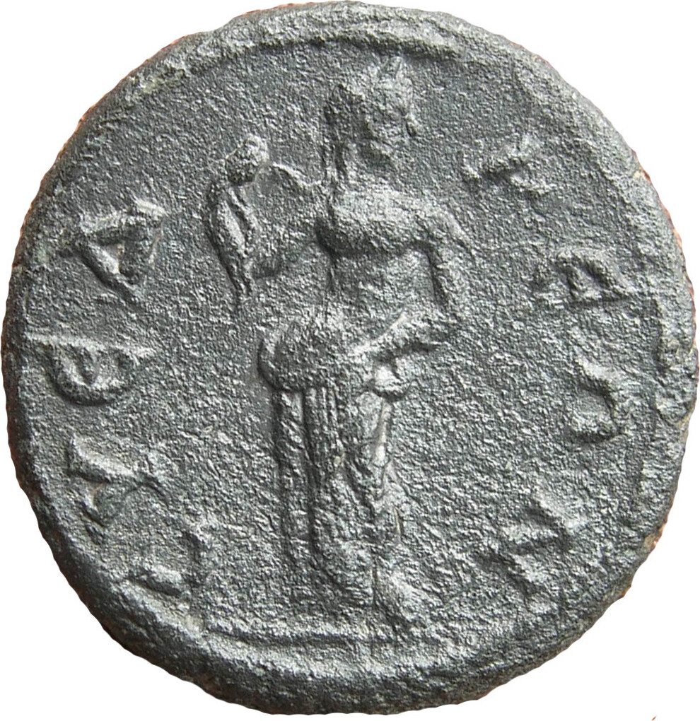 female deity (Aphrodite, Artemis or Demeter?) standing, facing, head, right, holding pomegranate and branch