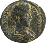 laureate-headed bust of Commodus (youthful) wearing cuirass and paludamentum, right, seen from rear