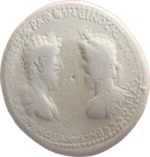 laureate-headed busts of Marcus Aurelius (on left) and Lucius Verus (on right), facing each other, both wearing cuirass and paludamentum
