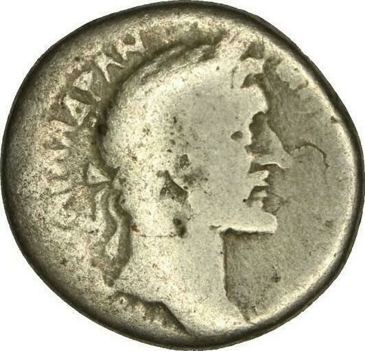 laureate head of Antoninus Pius, right