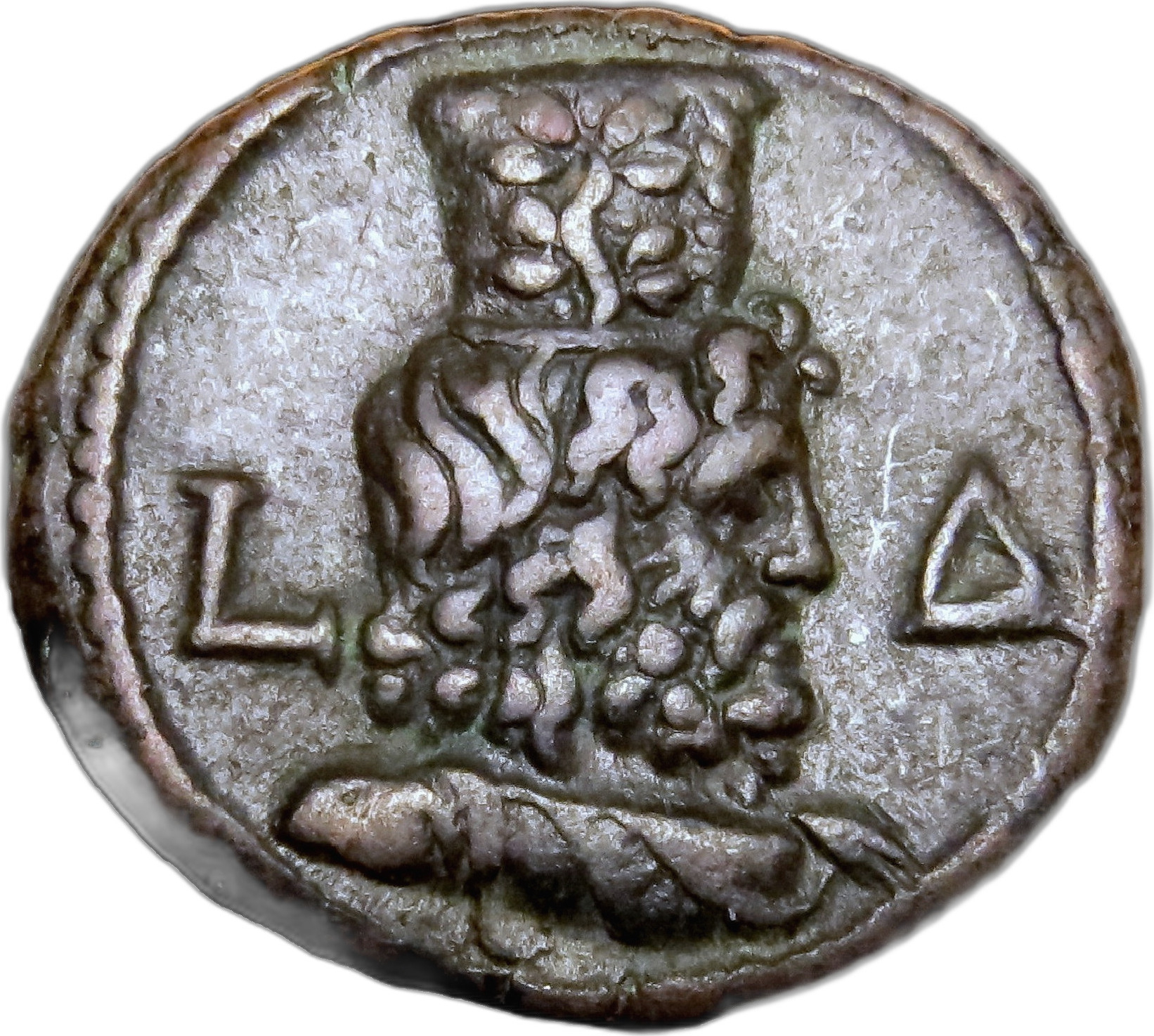 Sarapis bust right, draped and wearing kalathos