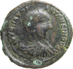 laureate, draped and cuirassed bust of Elagabalus, right, seen from rear