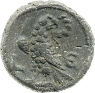 bare-headed, draped and cuirassed bust of Severus Alexander Caesar, right, seen from front |