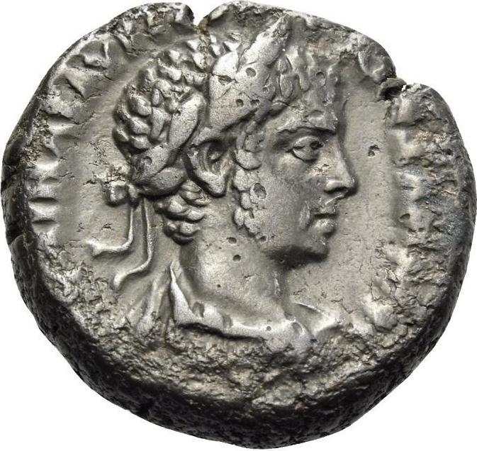 laureate, draped and cuirassed bust of Severus Alexander, right, seen from rear |