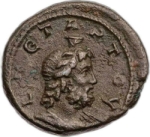 laureate, draped and cuirassed bust of Severus Alexander, right, seen from rear |