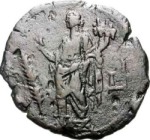 laureate, draped and cuirassed bust of Severus Alexander, right, seen from rear |