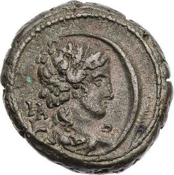 laureate, draped and cuirassed bust of Severus Alexander, right, seen from rear |