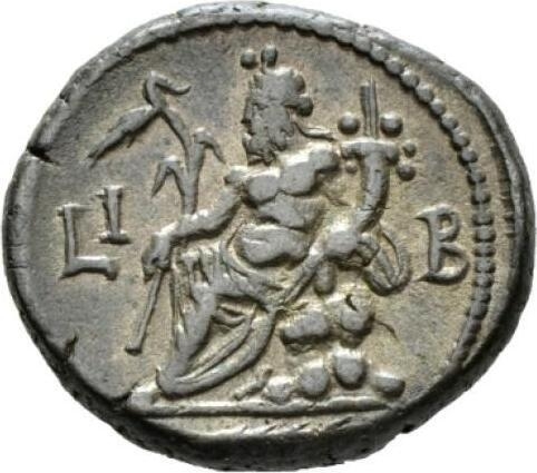 laureate, draped and cuirassed bust of Severus Alexander, right, seen from rear |