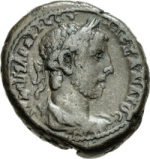 laureate, draped and cuirassed bust of Severus Alexander, right, seen from rear |