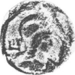 Athena bust right, draped and wearing Corinthian helmet (griffin under the crest); in front, palm branch