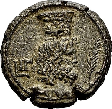 'year 3', but the presence of a palm on the rev. and the form of the obv. inscription suggest a misread coin of year 13