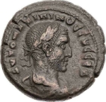 laureate, draped and cuirassed bust of Maximinus, right, seen from rear