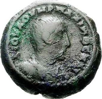 bare-headed, draped and cuirassed bust of Maximus, right, seen from front
