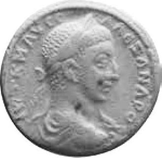 Obverse design laureate, draped and cuirassed bust of Severus Alexander, right, seen from rear