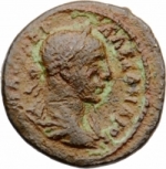 laureate, draped and cuirassed bust of Severus Alexander, right, seen from front