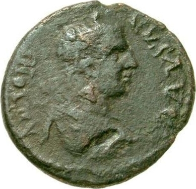 laureate, draped and cuirassed bust of Elagabalus, right, seen from rear