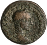 laureate, draped and cuirassed bust of Severus Alexander, right, seen from rear |