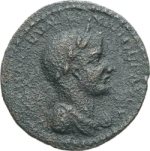 laureate, draped and cuirassed bust of Severus Alexander, right, seen from front |