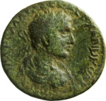 laureate, draped and cuirassed bust of Severus Alexander, right, seen from rear |
