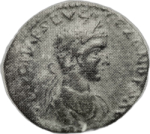 laureate, draped and cuirassed bust of Severus Alexander, right, seen from front |