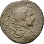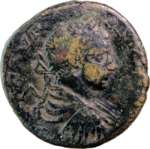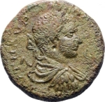 laureate, draped and cuirassed bust of Elagabalus, right, seen from rear |