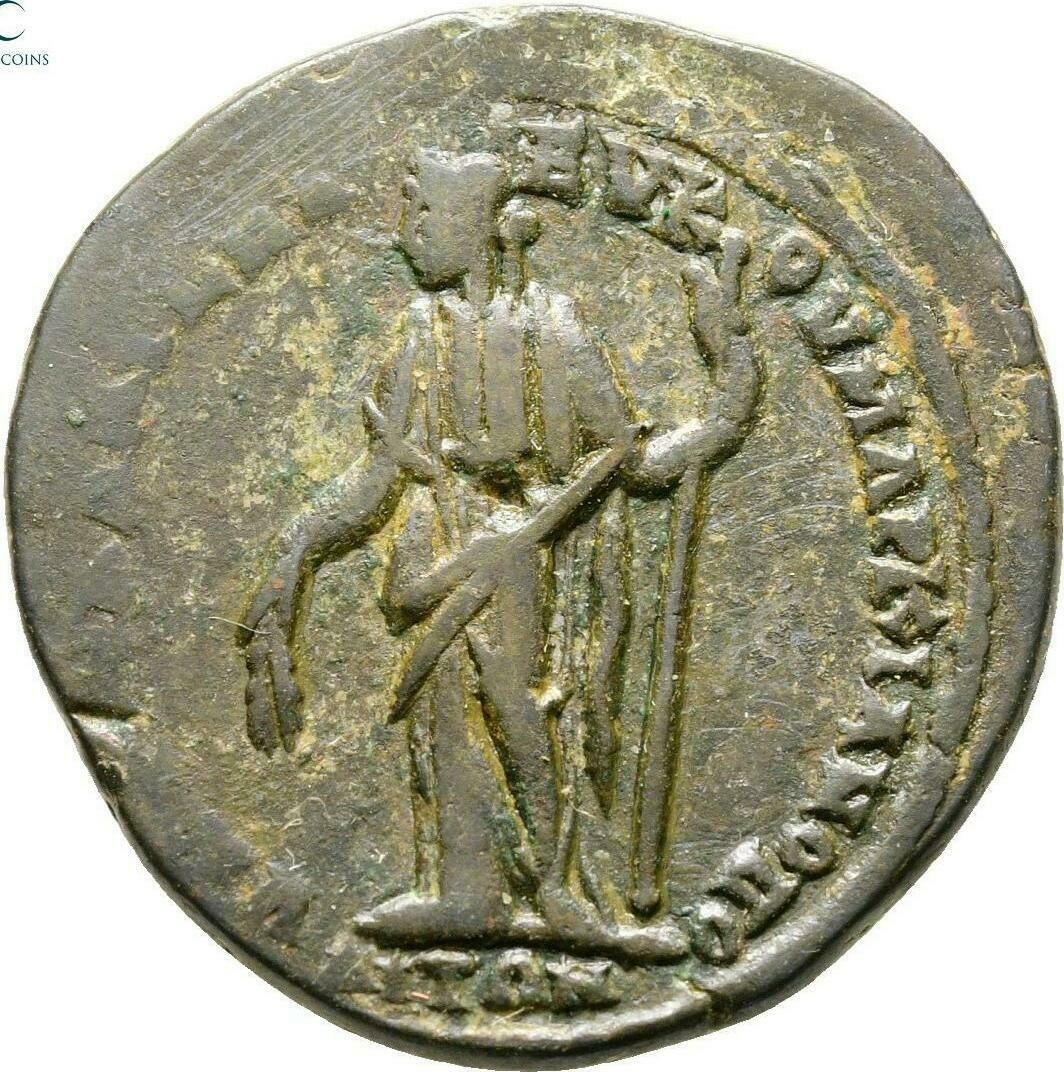 Demeter standing facing, head left, holding corn ears downwards and long torch |