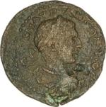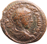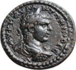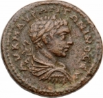 laureate, draped and cuirassed bust of Elagabalus, right, seen from rear |