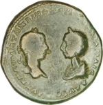laureate head of Elagabalus, right, facing diademed and draped bust of Julia Maesa, left |