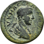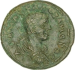 laureate, draped and cuirassed bust of Severus Alexander, right, seen from rear |