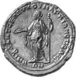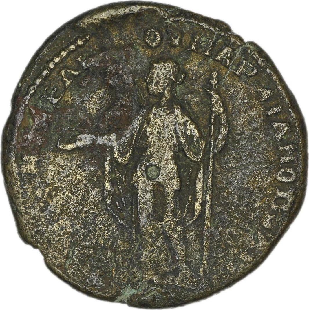 Hera standing facing, head left, holding patera and resting on long sceptre |