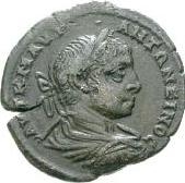 laureate, draped and cuirassed bust of Elagabalus, right, seen from rear