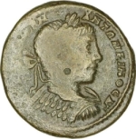 Zeus seated, left, holding patera and long sceptre |