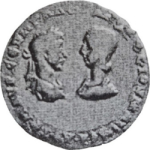 laureate, draped and cuirassed bust of Severus Alexander, right, seen from rear, facing draped bust of Julia Mamaea, left |