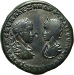 laureate, draped and cuirassed bust of Severus Alexander, right, seen from rear, facing diademed and draped bust of Julia Mamaea, left |