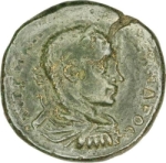 laureate, draped and cuirassed bust of Severus Alexander, right, seen from rear