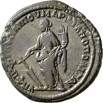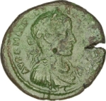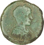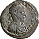 laureate, draped and cuirassed bust of Severus Alexander, right, seen from front |