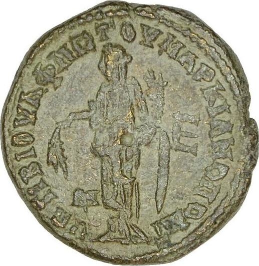 Reverse inscription ΥΠ ΤΙΒ ΙΟΥΛ ΦΗϹΤΟΥ ΜΑΡΚΙΑΝΟΠΟΛΙΤΩΝ Ε