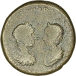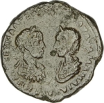 laureate, draped and cuirassed bust of Severus Alexander, right, seen from rear, facing diademed and draped bust of Julia Mamaea, left |