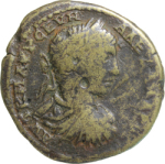 laureate, draped and cuirassed bust of Severus Alexander, right, seen from rear |