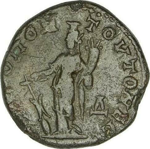 laureate, draped and cuirassed bust of Elagabalus, right, seen from rear |