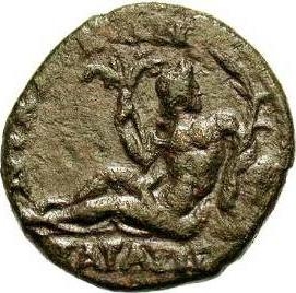 river god Sagaris bearded, reclining, left, looking back, holding reed and resting on vase from which water flows