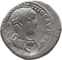laureate, draped an cuirassed bust of Elagabalus, right, seen from rear