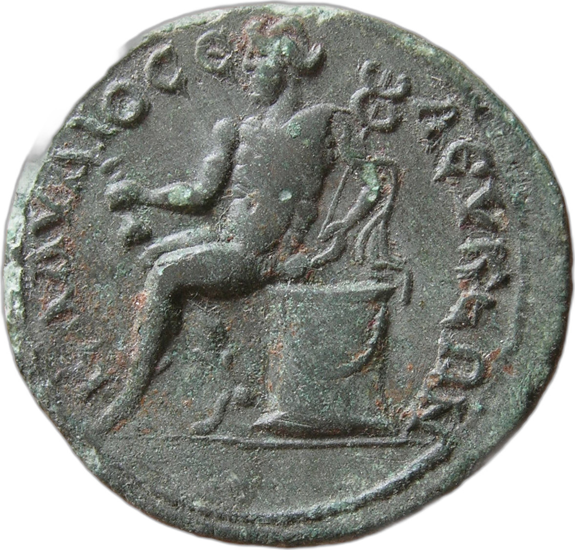laureate, draped and cuirassed bust of Severus Alexander, right, seen from rear |
