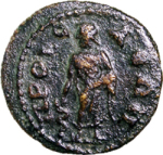 laureate, draped and cuirassed bust of Severus Alexander, right, seen from rear
