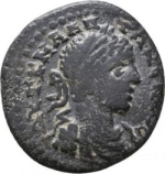 laureate and cuirassed bust of Elagabalus, right, seen from front