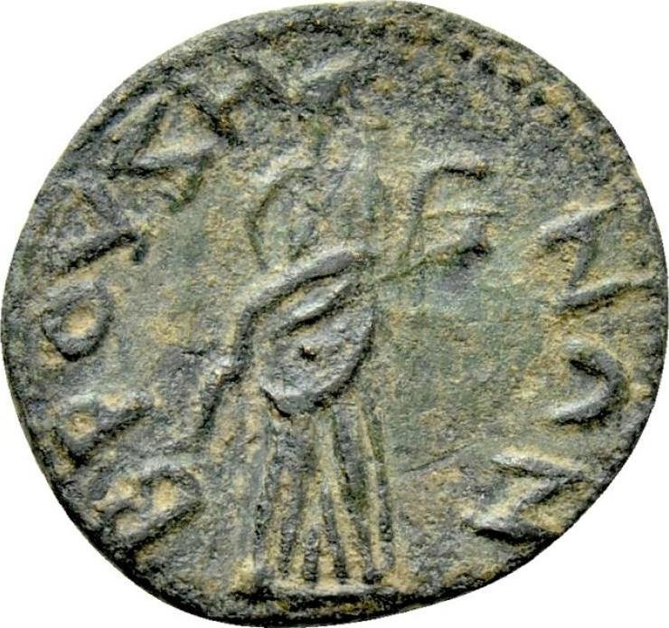 laureate, draped and cuirassed bust of Maximus (or Maximinus?), right, seen from rear