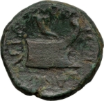 galley prow right; above, cornucopia
