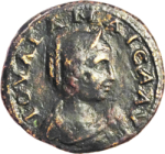 diademed and draped bust of Julia Maesa, right