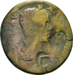 GIC 278 (Mên standing facing, head l., holding sceptre in l. hand and pinecone in r., Α in l. field, uncertain letter or character in r. field)