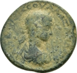 laureate, draped and cuirassed bust of Severus Alexander, right, seen from rear